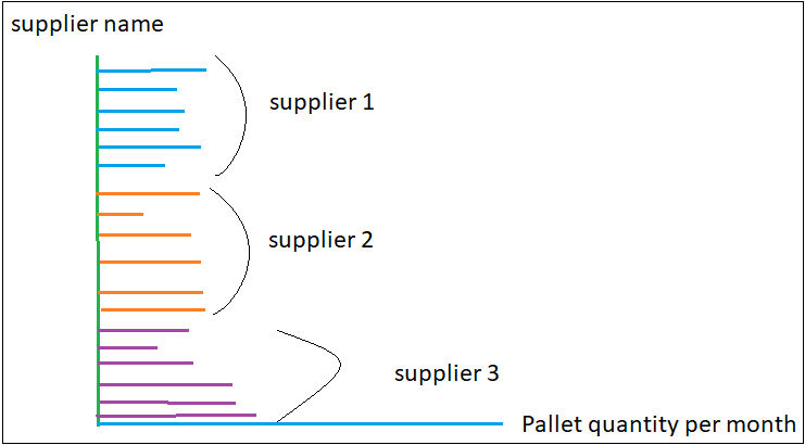 - Use results to generate a horizontal chart at front end (for example if it is half year transactions, draw 6 bars in horizontal chart for each supplier)