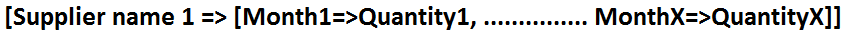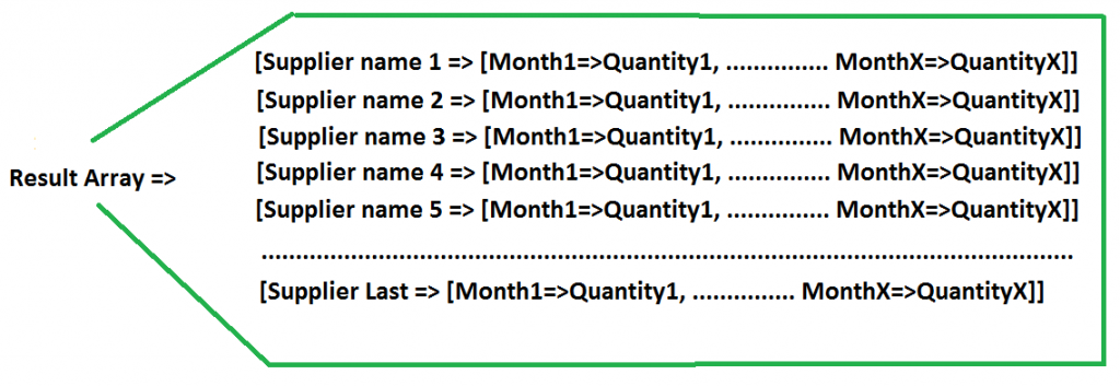 //add an associative array to result array with suppliers name as key and monthAndQuantity array as it's value
