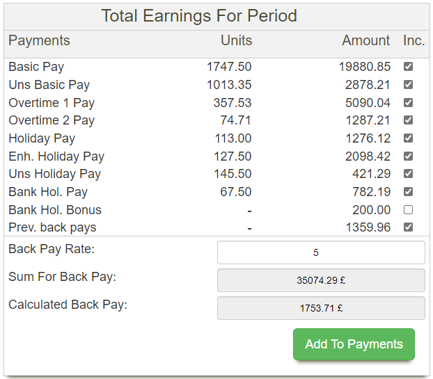 Payment details consist of information like hourly and overtime rates, also employment information can be submitted as well, such as employer name, job position or shift type.